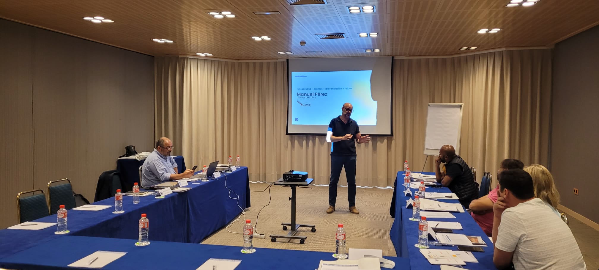 En el evento participaron personas conocedoras del sector del automóvil Raúl González responsable de comunicación B2B, Manuel Pérez CEO de la empresa CLICK especialistas en DMS para talleres, David Menéndez CEO de Affinity Soluciones dedicados a la fidelidad de los clientes, Salvador Ferrer CEO de Interneting MKT Digital, junto con Jesús Martínez CEO de DelfínGrupo y Javier Rico responsable de la red DSI.mobility.